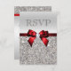 Chic Silver Sequins Diamond Red Bow Wedding RSVP