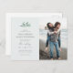 This minimalist wedding design is perfect for that modern couple looking for something unique. This postcard invitation features a watercolor branch with gorgeous modern typography underneath and your own custom photo on the right-hand side against a pastel blue background. On the back, there is a green watercolor wash to perfectly complement the front. Click the blue "personalize" button to add your own details and watch your design come to life in front of you!