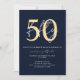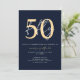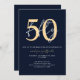 Chic Simple Minimalist Blue Gold 50th Birthday Invitation