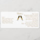 Modern minimalist skinny wedding reception menu done in a long skinny horizontal shape. The menu has a white background, on the front, with graphics of two filled champagne glasses, in the middle. Personalize the golden brown text for your wedding reception.