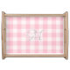 Chic soft pink gingham monogram name serving tray