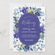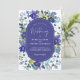 Chic spring dusty blue dark purple floral wedding invitation