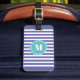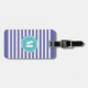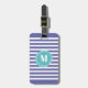 Pretty and chic cabana stripe luggage tag in blue violet shade) and white striped pattern with your monogram inside an abstract aqua blue circle.