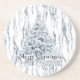 Chic Stripes Silver Christmas Tree Coaster