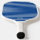 This stylish pickleball paddle features a colorful bright blue and white elegant striped pattern, with a spot for your initials or monogram in tiny font so it won't be very noticeable, yet it serve to show that this is your paddle!