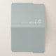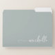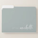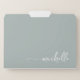 Feminine Modern Sage Green Stylish Monogram Name Signature Script Custom Personalized Office Business Professional File Folder. This minimalist design featuring your first name in a pretty hand lettered style swash tail font signature typography (or calligraphy) in white on sage green or dusty green color background. These are easy to customize it. Great stylish feminine housewarming gift, also for birthday, baby shower, wedding, bridal shower, sweet 16 birthday party, for graduation party and It’s for the girl who loves unique delicate things.