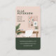 A chic and stylish home office workstation office desk business card featuring our hand-drawn watercolor wood desk with green plants, coffee mug & boss babe nameplate with a white chair. A rose copper wall organizer with social media icons placed on the paper sheets. Personalize with your business information This cute stylish office desk workspace business card is perfect for a wide range of businesses such as social media specialist, blogger, writer, interior designer, influencer, home decor store, boutique, furniture store, home staging, realtor, freelancer, and so much more. All illustrations are hand-drawn original artwork by Moodthology.
