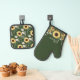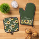 Chic Sunflower Floral Pattern Custom Script Name Oven Mitt & Pot Holder Set