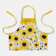 Modern kids apron with a sunflower pattern and a feminine, hand lettered script name. Personalize with your name.