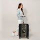 A stylish zebra print, your name on the top and your initial monogram on the front decorate this suitcase. Choose the color of your suitcase shell, the handle, wheel covers and bumpers. The perfect personal gift or accessory for any occasion! MATCHING luggage tag, drawstring bag, cell phone case and more in our travel collection.