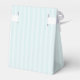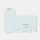A lovely tea party themed baby shower favor box that features a soft baby blue, yellow and white color scheme. An original illustration of a pretty china teacup is set against a pale blue stripe background and accented with cursive typography.