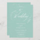 Chic teal blue all in one calligraphy wedding invitation