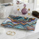 Enhance your space with this elegant fused glass trinket tray, featuring a marble-inspired wave pattern in teal blue, aqua turquoise, amethyst, purple, and shimmering gold accents. Designed as both a functional organizer and a decorative accent, this tray brings a refined, artistic touch to any vanity, dresser, bathroom shelf, or desk. The flowing marble design reflects the natural movement and depth of stone, while the glossy glass finish and gold detailing add a luxurious, handcrafted feel. Perfect for holding rings, earrings, watches, or small keepsakes, it keeps everyday essentials beautifully displayed. Ideal for personal use or as a thoughtful gift, this decorative jewelry tray makes a lovely choice for birthdays, housewarmings, bridal showers, or elegant thank-you gifts. A timeless accent piece that blends color, sophistication, and artistry.