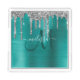 Chic Teal Brushed Metallic Silver Glitter Drips Acrylic Tray