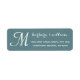 This is a lovely elegant teal and white return address label with a unique custom multi-color Monogram. It creates a sophisticated look for the address labels. For yourself or lovely as a gift. If you have any design questions or require assistance, just send an email to charmdesignstudio@rcn.com and we'll be delighted to assist.