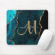 Chic Teal Gold Agate Script Custom Monogram Mouse Pad