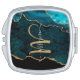 Chic Teal Gold Glitter Agate Custom Monogram Compact Mirror