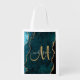 Chic Teal Gold Glitter Agate Custom Monogram Grocery Bag