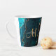 Chic Teal Gold Glitter Agate Custom Monogram Latte Mug