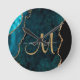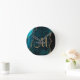 Chic Teal Gold Glitter Agate Custom Monogram Round Clock