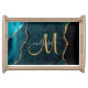 Chic Teal Gold Glitter Agate Custom Monogram Serving Tray