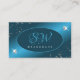 Chic Teal Gradient Glitter Stars Diamonds Initials Business Card