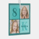 Chic Teal Photo Collage Personalized Christmas Glass Ornament