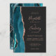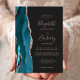Chic Teal Rose Gold Agate Dark Wedding Invitation