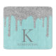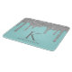 Girly Chic Teal Aqua Silver Sparkle Glitter Drips Monogram Cutting Board with fashion faux silver glitter dripping onto a chic silver background with your custom monogram and name. Designed by Cedar and String. If you need assistance or matching items, please contact us at cedarandstring@gmail.com.