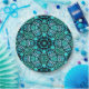 Beautiful chic contemporary bright aqua turquoise, light pastel and dark blue, vibrant mint green, white and black colored ethnic Moroccan or Turkish fantasy mosaic style kaleidoscope pattern.