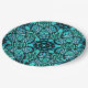 Chic Teal Turquoise Retro Oriental Mosaic Pattern Paper Plates