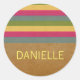 Chic Textured Stripes Customizable Stickers. This design features textured stripes on a distressed brown paper background. These grungy yet vibrantly colored stickers may be customized with a name or other personalized text.