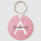Chic and glam blush pink rose gold glitter sparkles metallic keychain with a large, white monogram initial and your custom name in an elegant gray script font. Personalize this trendy keychain with your name or monogram initial. You can change the text color and font style and size using the customize option.