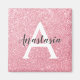 Chic and glam blush pink rose gold glitter sparkles metallic magnet, with a large, white monogram initial and your custom name in an elegant gray script font. Personalize this trendy magnet with your name or monogram initial. You can change the text color and font style and size using the customize option.