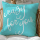 Add a touch of whimsy and romance to your home décor with this chic turquoise and white throw pillow. Featuring the playful phrase "Crazy for You" in a stylish script font, this pillow is perfect for expressing your love and affection. The soft turquoise color and modern design make it a versatile addition to any bedroom, living room, or cozy nook.