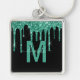 Chic Turquoise Dripping Glitter Monogram Name Keychain