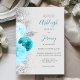 Chic Turquoise Floral Silver Glitter Gray Wedding Invitation