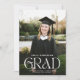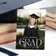 This chic graduation announcement features a vertical full frame photo and modern yet elegant typography. This is a chic and elegant design. You can customize this design even further by adding another photo or additional text to the backer. All type, including "GRAD", is completely customizable.