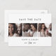 This chic typography 3 photo template save the date postcard is perfect for a modern wedding. The simple design features classic minimalist black and white typography with a rustic boho feel. Customizable in any color. Keep the design minimal and elegant, as is, or personalize it by adding your own graphics and artwork.