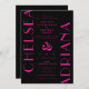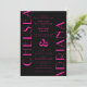 Your wedding will POP with this trendy wedding invitation by JessicaAmber. This classy card features a black and hot pink color scheme. The names of the couple are written in large vertical Art Deco typography. The back features a modern monogram. For more wedding suites, visit my store Zazzle.com/EventsByJessicaAmber ••• For custom orders, message me on Zazzle