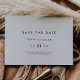 This chic typography horizontal save the date card is perfect for a modern wedding. The simple design features classic minimalist black and white typography with a rustic boho feel. Customizable in any color. Keep the design minimal and elegant, as is, or personalize it by adding your own graphics and artwork.
