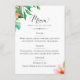 Chic typography, botanical island watercolor flowers and foliage, wedding menu card with hand drawn script and decorative accents. Backing color shown in deep ocean teal can be customized.