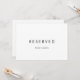 This chic typography reserved sign is perfect for a modern wedding. The card is double sided (prints on both sides). The simple design features classic minimalist black and white typography with a rustic boho feel. Customizable in any color. Keep the design minimal and elegant, as is, or personalize it by adding your own graphics and artwork. Use these cards to reserve chairs or tables at your wedding ceremony, reception or any event.