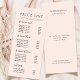 Chic Typography Business Services Blush Pink Price List rack card.