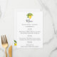 Chic typography design with rustic watercolor lemons, wedding menu card with script and decorative accents. Back of menu card features matching lemon and leaf arrangement.