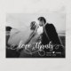Modern Handwritten Wedding "Love and Thanks" script Thank You postcard. Stylish wedding thank you postcard template featuring a full horizontal photo on the front with the text "Love and Thanks" in a swirly handwritten typography script overlay with swash in white color on the picture. Personalize the custom name and thank you message. If you prefer to handwrite your note, just delete the sample text to make more space. If You need help or matching item, please contact to me!