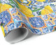 Chic vase Mediterranean orange tiles Wrapping Paper. An exquisite floral botanical citrus garden pattern inspired by the summer bright italian themed art of majolica Sicilian ceramic tiles in blue yellow colors. click the "customize further" link and use the design tool to modify the design if you like or customize it over another product of your choice. Whether for valentines day, Christmas or as any occasion it will make a perfect gift.