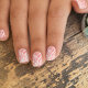 This left and right hand nail art features a colorful pastel peach and pink spiral background design with white vines and flowers.