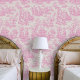 Vintage baby pink de jouy printed Wallpaper. This toile de jouy vintage Wallpaper is inspired by the exquisite designs of french countryside scenes. These sophisticated Toile prints are an all time rage at the moment, beautiful designs that bring natural beauty to any room. Perfect for creating a serene and elegant atmosphere, this wallpaper combines both traditional charm and contemporary style. The designs are classic and timeless with stylish classy colors.