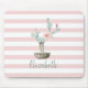 Chic Watercolor Cactus,Pink Stripes Mouse Pad